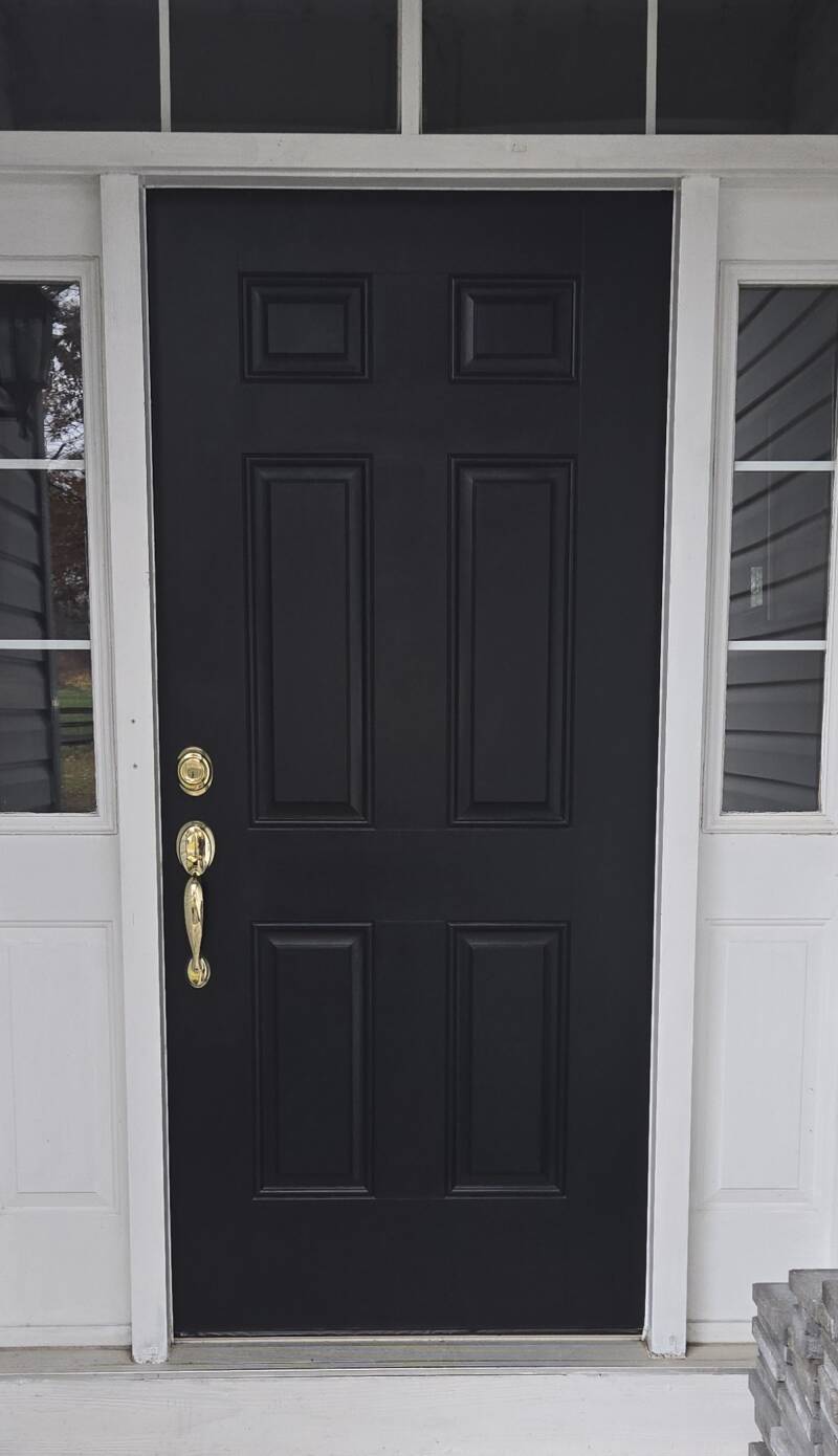 I used Benjamin Moore Exterior Satin Paint to Finish this door prior to installing the storm door.